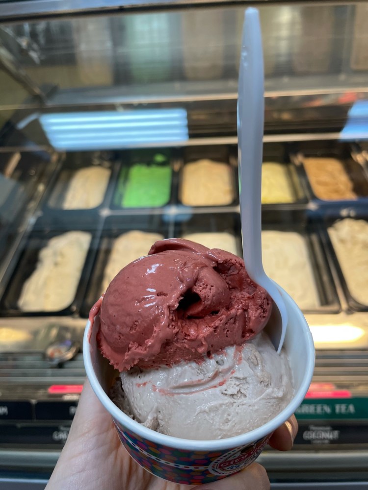 - Cinnamon (Natalie): Anytime I see this flavor, it is a must get for me! If you have never tried cinnamon ice cream, you need to asap! This homemade cinnamon was classic and perfect from the first bite – not overpowering with cinnamon and the perfect creaminess. Honestly, it reminded me of my grandmother’s homemade ice cream from my childhood, and there’s no better memories than family ice cream memories.