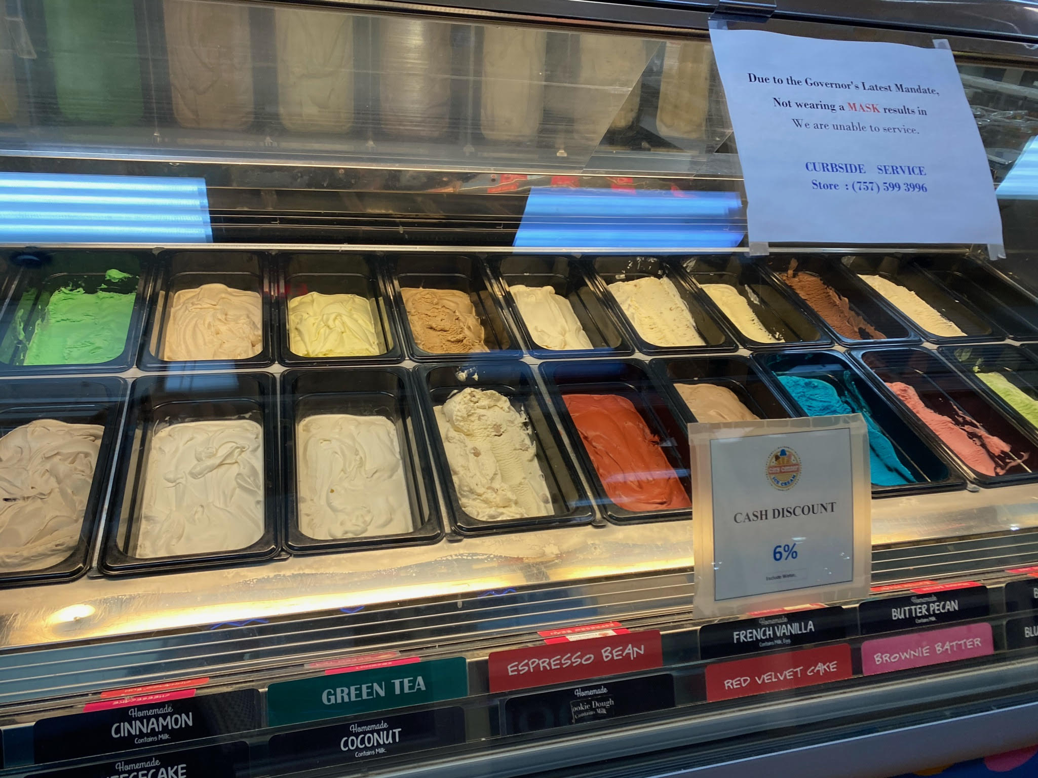 - Natalie: 2.5 Scoops – It was decent and nice to find homemade ice cream in the otherwise ice cream desert of Newport News, VA. While the flavors were simple, I really enjoyed the smooth texture and the fact that they had cinnamon as a flavor option, since it is uncommon and hard to find.