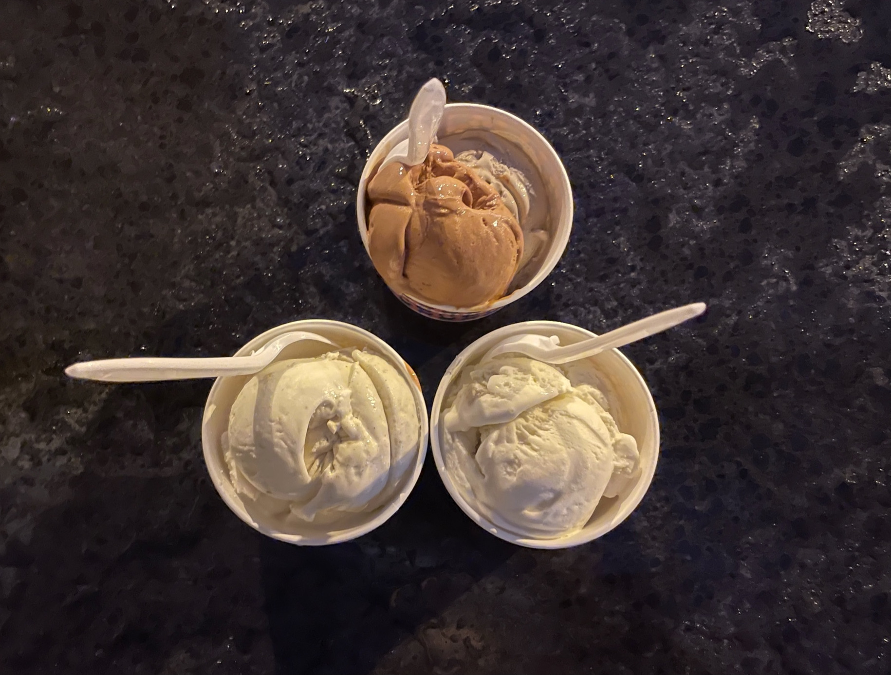 Prices were decent (about $17 for three “smalls”). You might say, “and that’s decent?” Well, it’s homemade ice cream, so it does tend to be a bit more expensive than other ice cream. And, more importantly, the portions were generous. It didn’t feel like they skimped on the portion (and they weigh it, so when there wasn’t enough in the cup, they went back and added some). We respect the consistency and getting the bang for our buck.