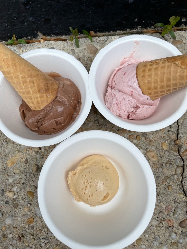 Natalie: 3 Scoops – The Charmery was cute and simple. It seems like a great quick stop for ice cream and their multiple locations make the convenience of homemade ice cream even better! I felt like their flavor selection was more limited than other places we have visited, but the classics were all represented and some fun options were there too.