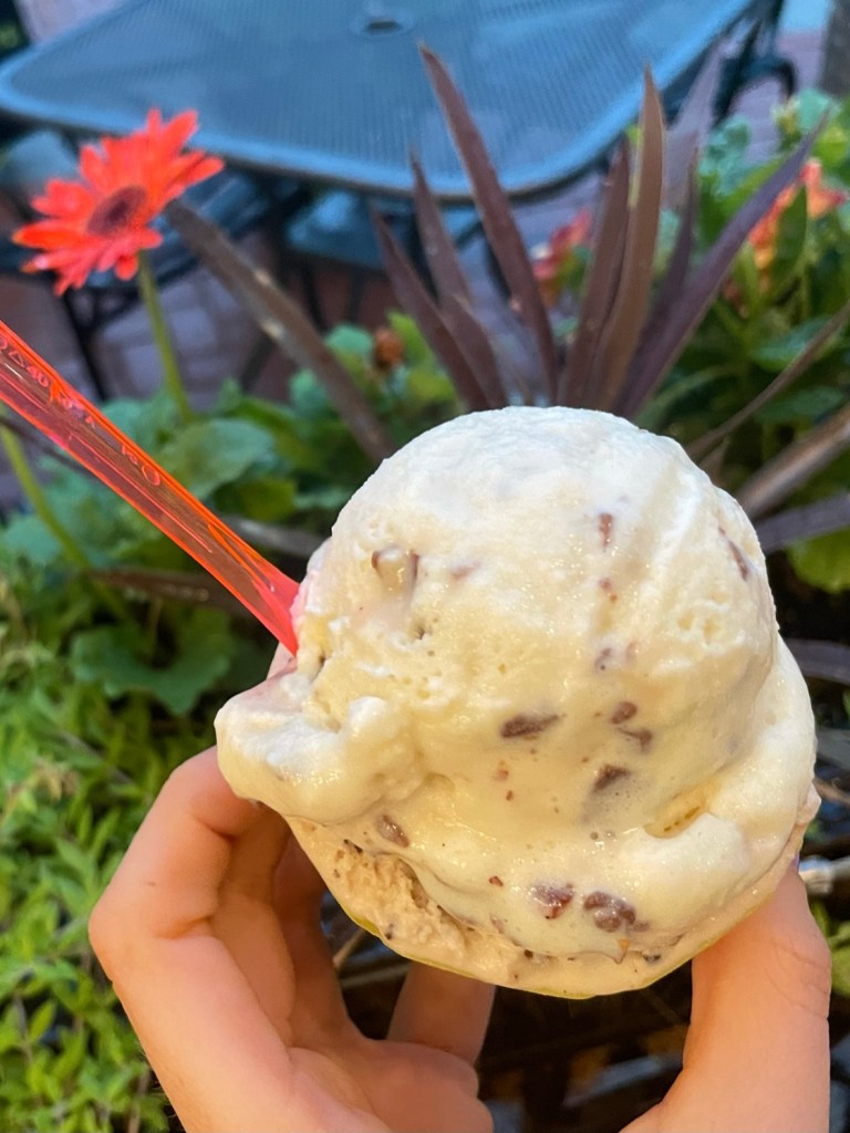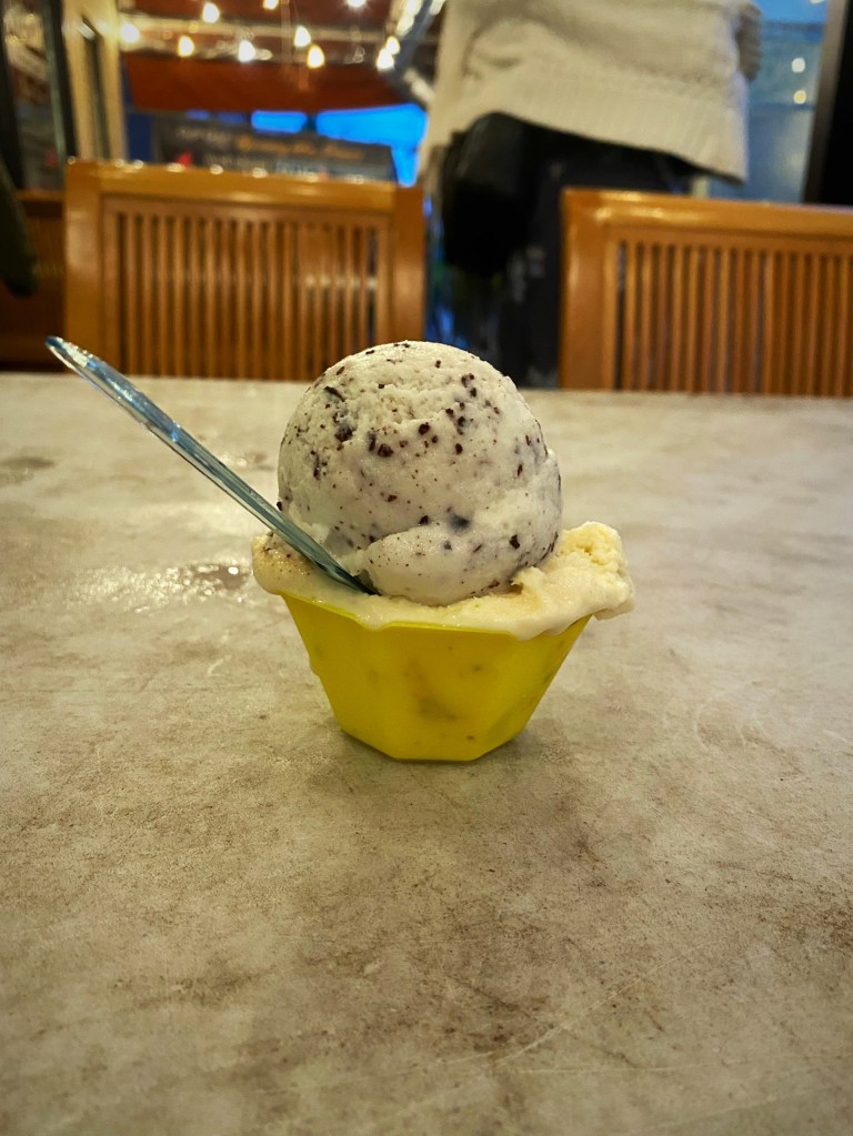 Stracciatella: This flavor’s name is a fancy way of saying chocolate chip. I enjoy stracciatella though because it is different than just the typical vanilla with chocolate chunks in it. This flavor was a simple white base with more like chocolate shavings inside instead of chunks. This scoop was a refreshing treat that was much lighter than I expected.