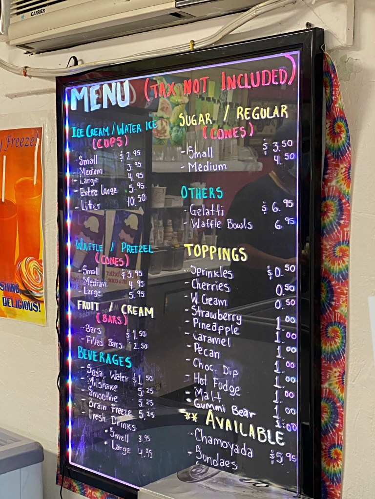 Water ice, sorbet and popsicles are also part of their specialties. Milkshakes and ice cream sundaes are also an option, but the large cup and cone serving sizes are what caught our attention. The portions were quite generous, which we greatly enjoyed!