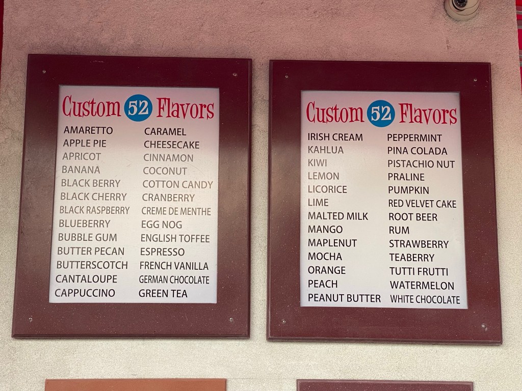 This family owned and operated ice cream shop only serves soft serve ice cream, but they carry 52 flavor options. We don’t know about you, but we’ve never seen any ice cream shop with that breadth of soft serve flavors! Ice Cream Delight had pretty much any flavor you could conjure up – from the classics to cantaloupe and Kahlua. Quite the range! And, they have plenty of toppings, sauces, and specialty desserts to help everyone find something they will enjoy.