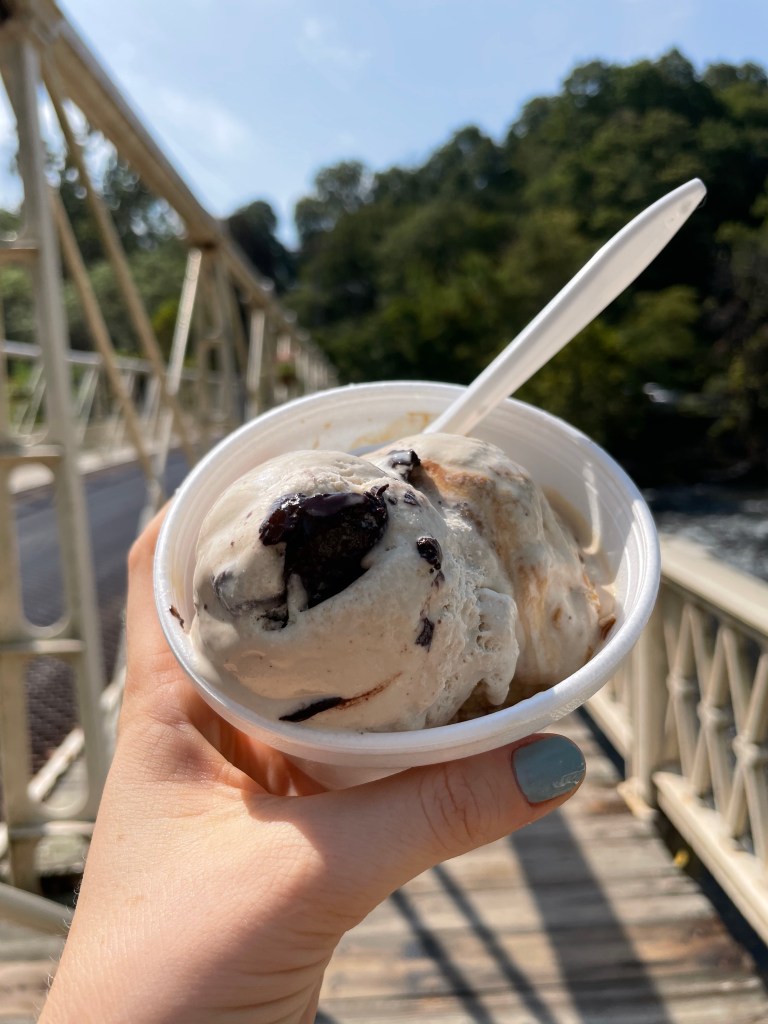 The shop has a lot of unique flavors of homemade ice cream, sundaes, milkshakes, and many other treats. Best of all, they allowed samples, so you bet I tried quite a few flavors before making my ultimate decision. The flavors range from the classic (vanilla, chocolate, fudge ripple, and chocolate chip cookie dough) to seasonal favorites (apple pie and pumpkin) to specialty flavors (Jolted Cow, Cinnamon Churro, Bourbon Pecan). I enjoyed every flavor that I tried!