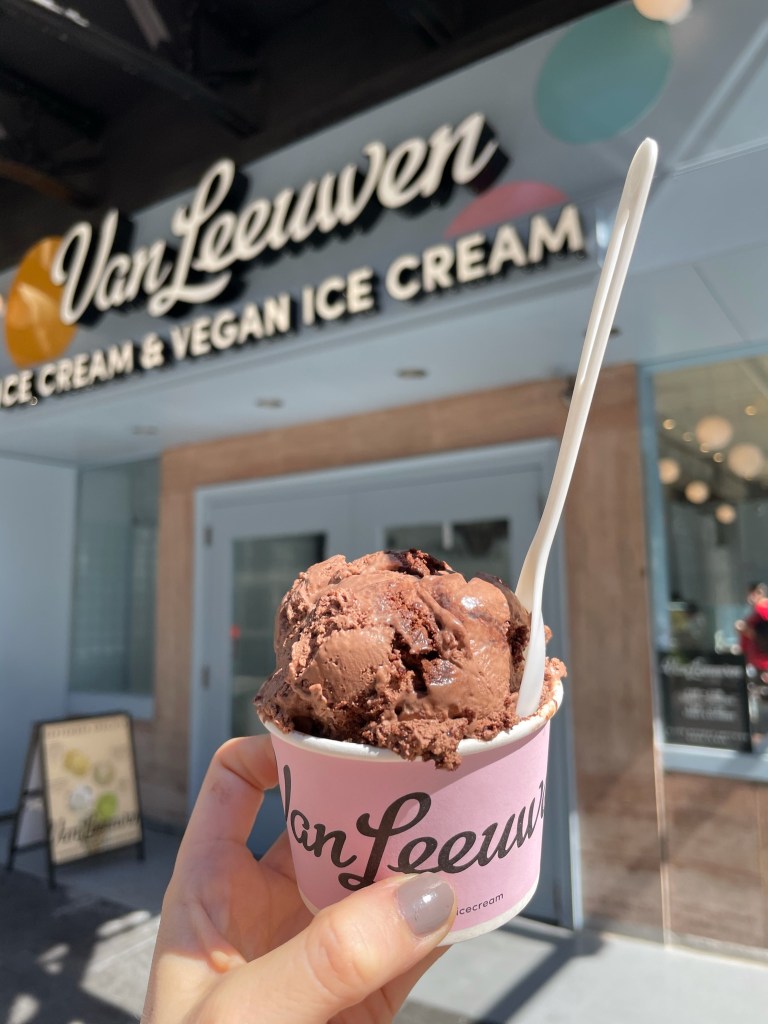 It was a great way to get a full taste of Van Leeuwen’s range of flavors. To name a few, we tasted chocolate, mint chip, vegan brown sugar cookie dough chunk, honeycomb, peanut butter brownie chip, marionberry cheesecake…. It was truly a delectable cross section of flavors. Overall the ice cream was super creamy and delivered on flavor.