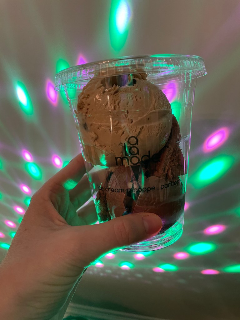 A La Mode Shoppe is unlike any ice cream place we’ve seen before. Not only do they serve ice cream and other goodies, but it’s also a boutique store, selling children’s clothes and toys. Tbh, it seems like a one-stop shop if you’re looking to buy something for the kids in your life and get ice cream. Or, really if you’re just in the mood for ice cream.