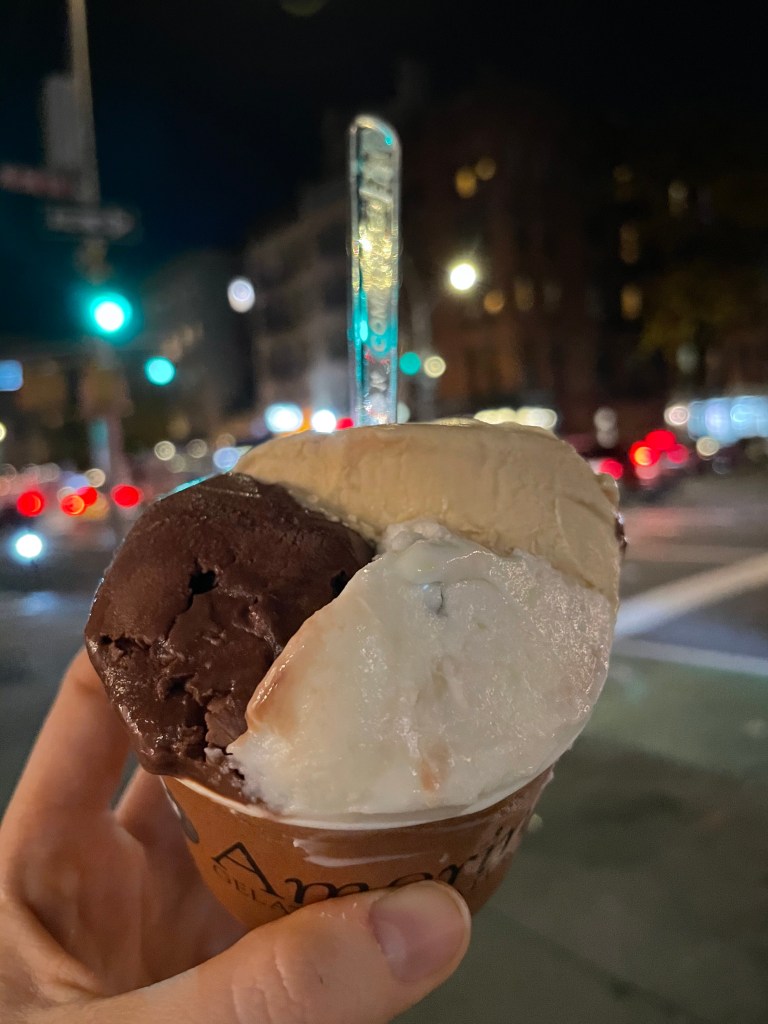 Amorino Chocolate: This was an intense dark chocolate ice cream. Like the rest of the flavors at Amorino, it was strong and you knew that you were eating dark chocolate ice cream. To me, it bordered on the line of bitter, but I still enjoyed it. It amazed me how the light and creamy gelato was able to carry such a strong, deep flavor. They had another chocolate option, which I’d definitely recommend for those who are not a fan of dark, slightly bitter chocolate.