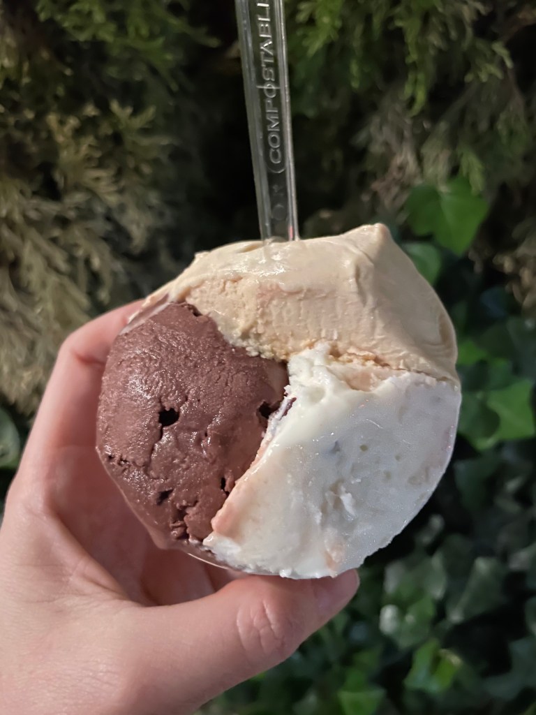 Stracciatella: The favorite flavor of the day! The vanilla base had such a strong vanilla flavor that tasted rich and pure, while also being light and creamy. It was amazing and highly enjoyable to eat. That strong vanilla flavor paired nicely with the dark chocolate woven throughout the base. It is no wonder why this flavor is a classic – it was truly delicious and I would absolutely go back for it.