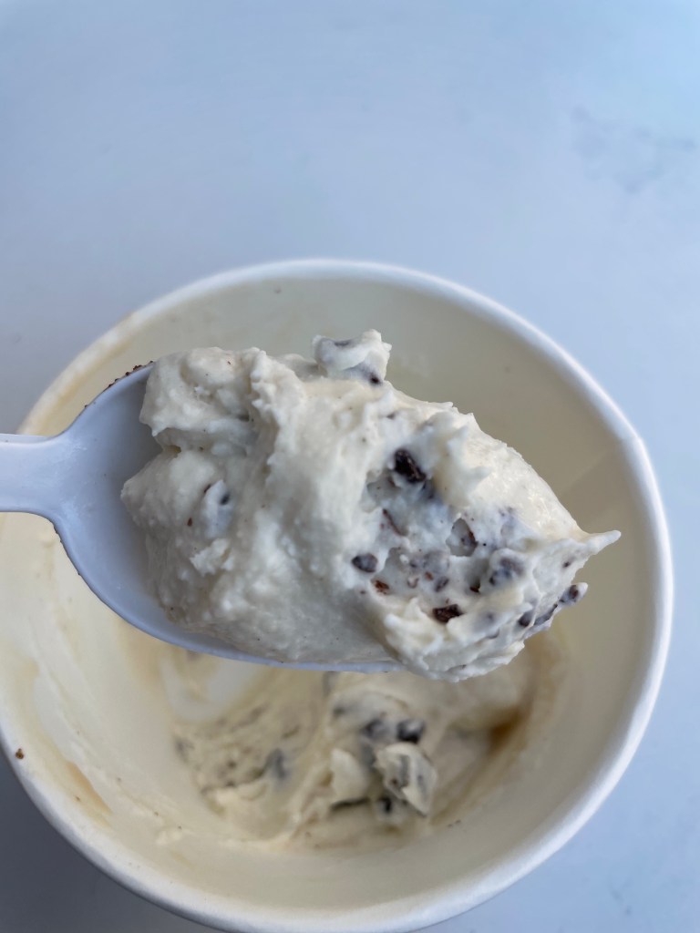 Chocolate Oat: This was a winning flavor for me. Honestly, one of the best flavor concepts we’ve had in recent history. It had toasted oat ice cream with slivers of chocolate throughout. It tasted EXACTLY like eating a chocolate chip oatmeal cookie. The toasted oat base had a yummy, slightly nutty flavor that was not overpowering, and paired perfectly with the small pieces of chocolate. It was a great flavor and we would go back to eat this again!